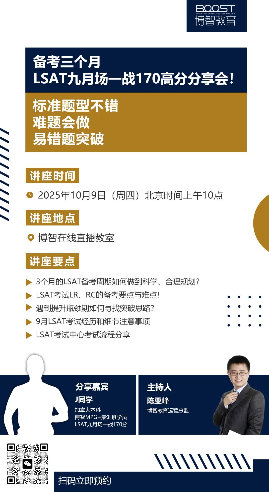 想要在LSAT考试中取得170+的高分吗?快来参加博智教育的LSAT九月场高分分享会吧!这次分享会将为你揭示备考的秘密,助你突破难题,轻松应对考试!
